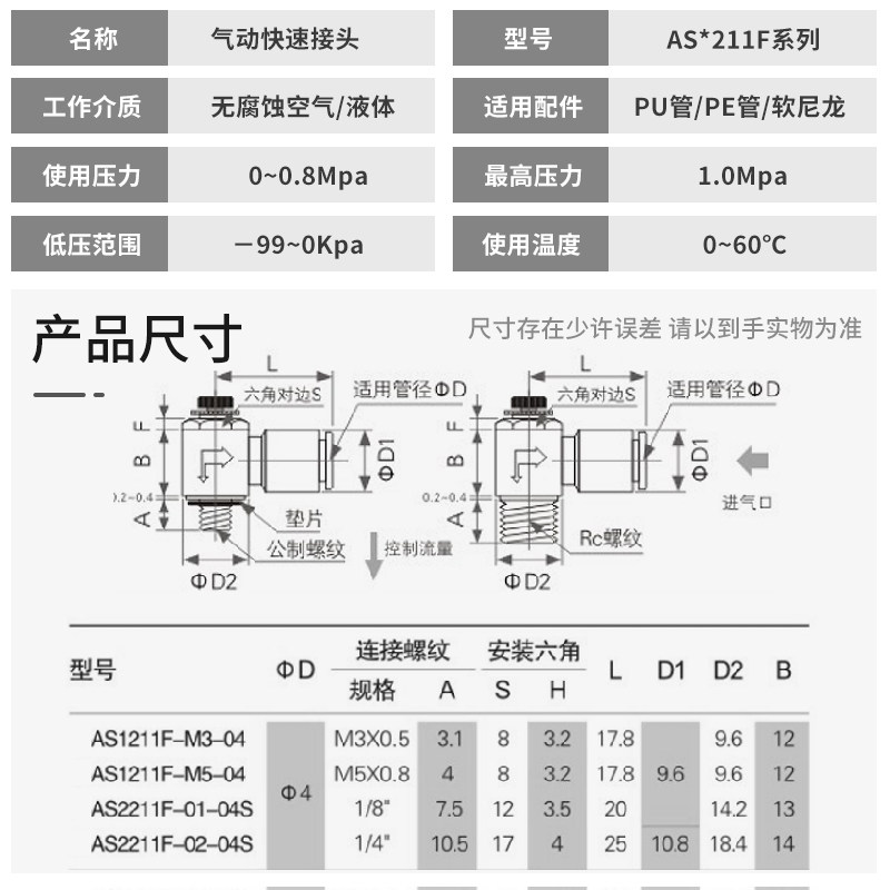 Limited entry throttle valve throttle AS1211F 2211 3211-M3 M5 01 06S 02-04S 06S 08S 10S