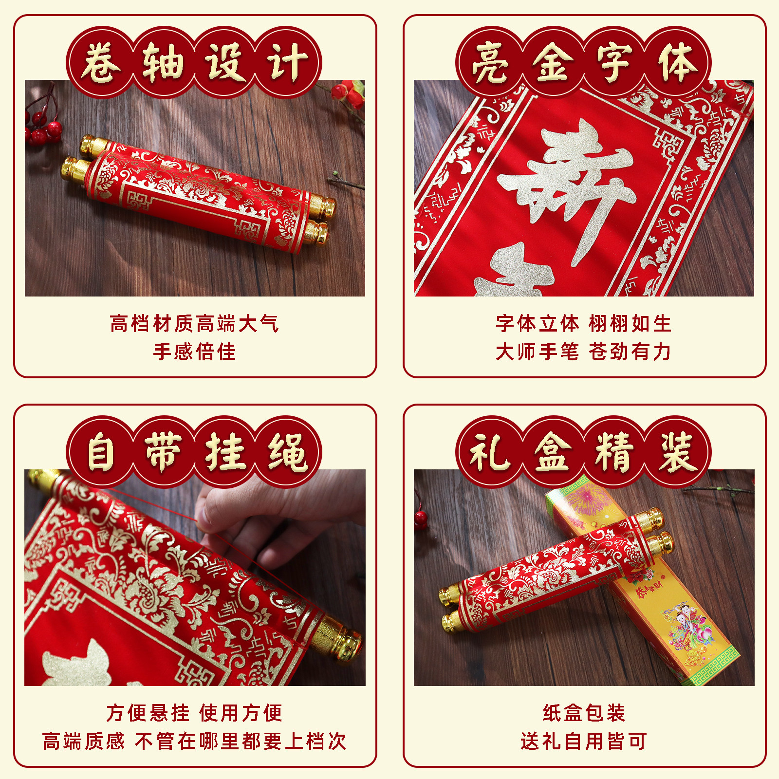 The New Year's Spring Festival holds annual meeting suede and couplets for the four-word scroll hanging up the stage performance decoration hanging accessories splurge