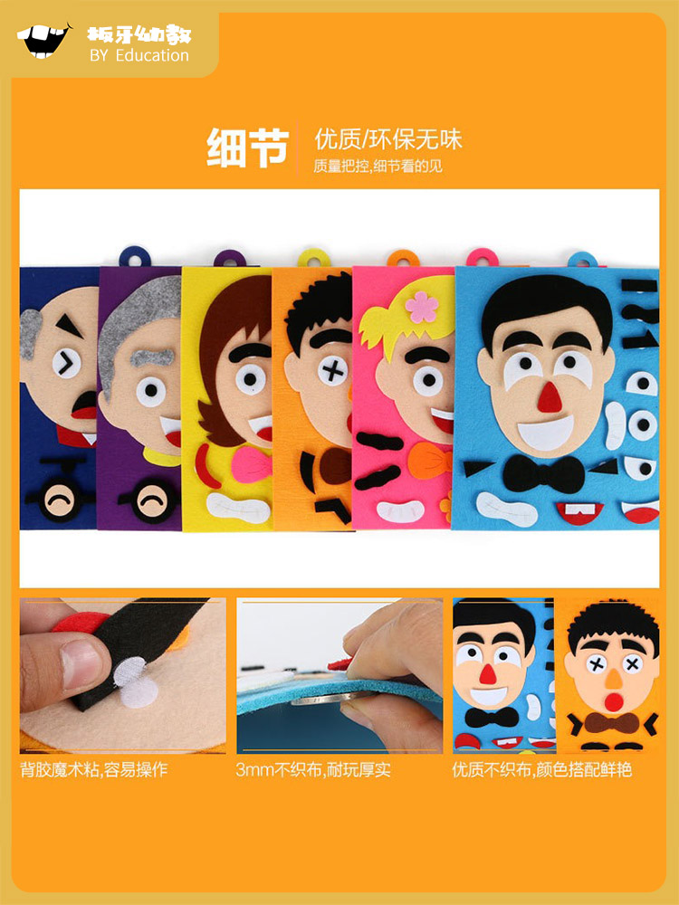Kindergarten Handmade Diy Making Unwoven Cloth Children Swap Five Official Expression Stickers for Puzzle Parenting Early Education