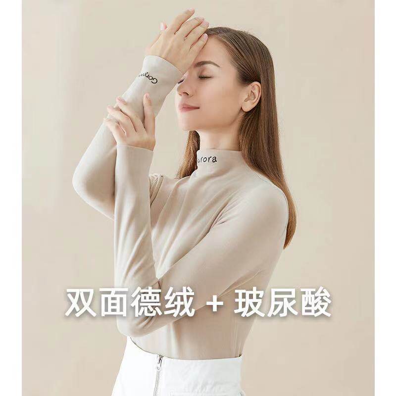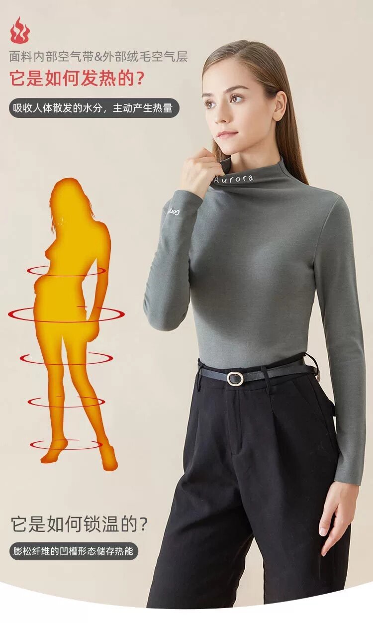 Glassy double sided Develvet autumnilly lady half-height neckline with self-heating embroidery hitting bottom high-bounty warm blouses