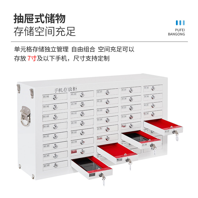 Smart face fingerprint recognition drawer type mobile phone storage cabinet staff conference room small wall-mounted mobile phone locker