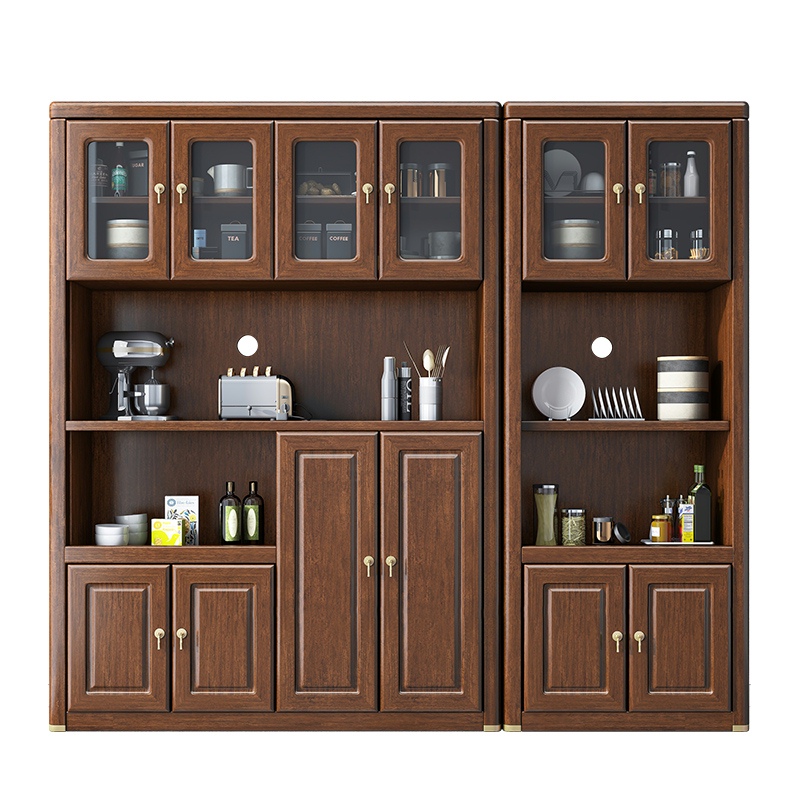 New Chinese style solid wood sideboard walnut wine cabinet kitchen cabinet storage cabinet bowl overall cabinet storage cabinet high cabinet bookcase
