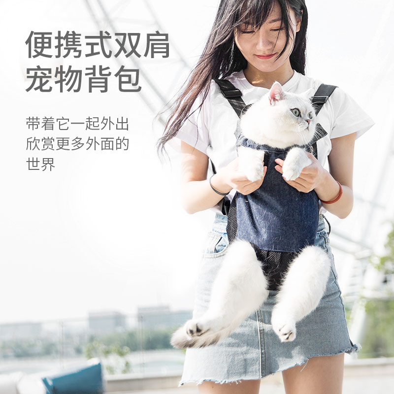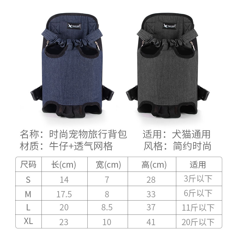 Pet Chest Front Bag Denim Double Shoulder Bag Outside Portable Bag bib Bear Teddy Mini Dog Pooch Breathable Four-foot Bag