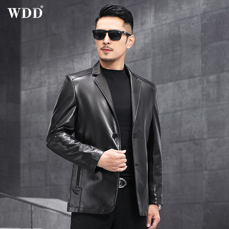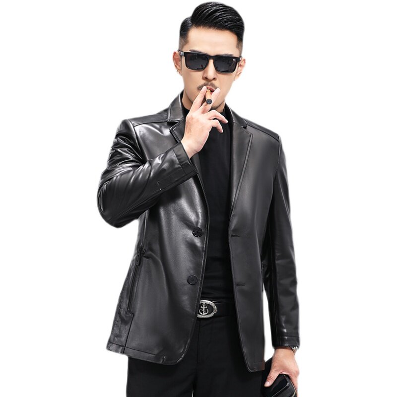 Haining genuine leather jacket men's first layer tire cowhide suit short slim leather jacket trend autumn and winter thin coat