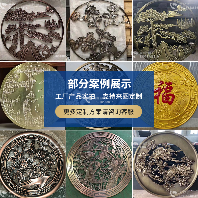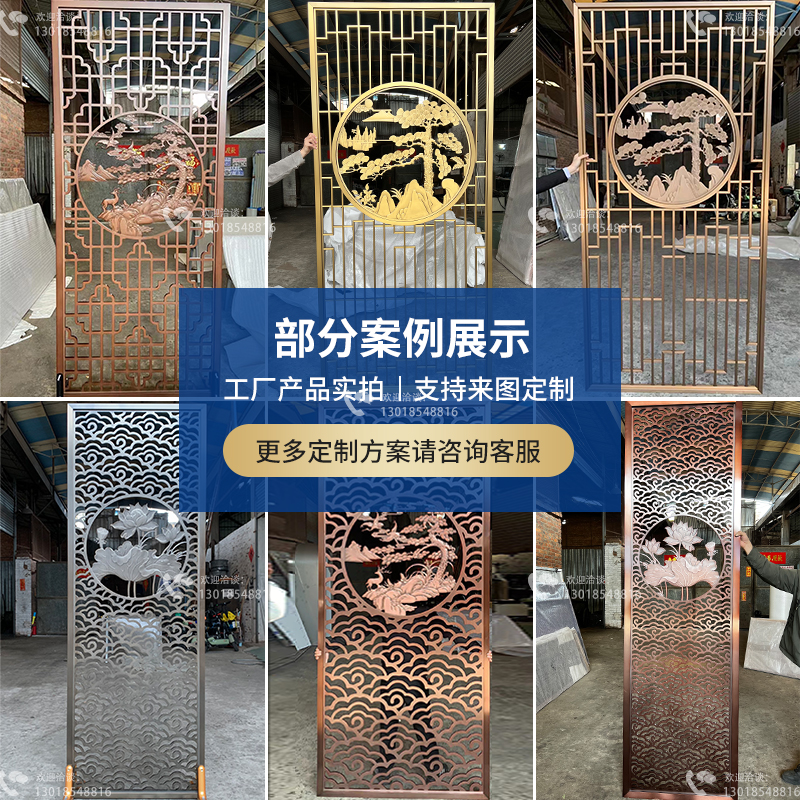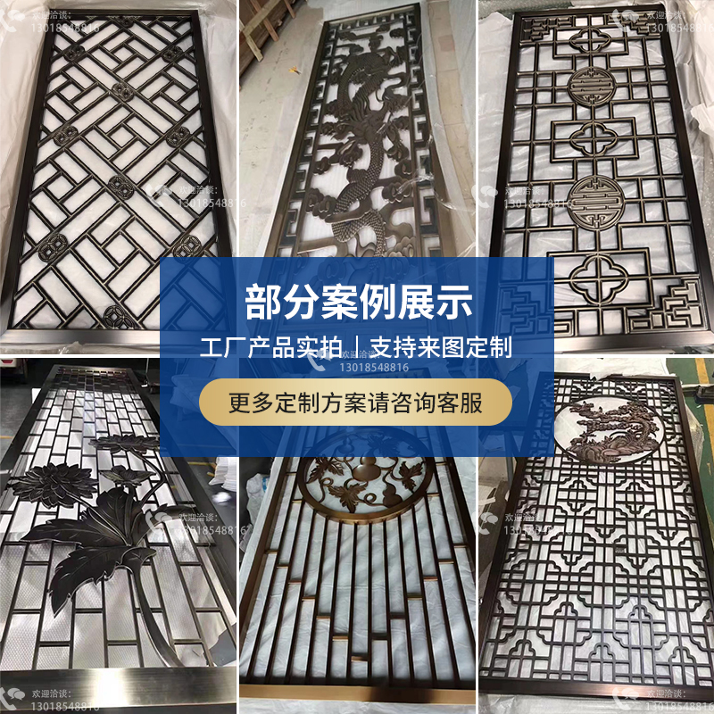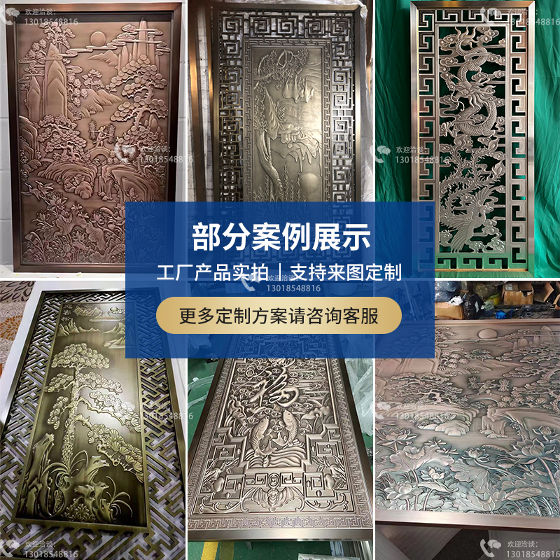 Stainless steel screen partition aluminum plate relief porch modern background wall metal lattice hollow European copper plate carving