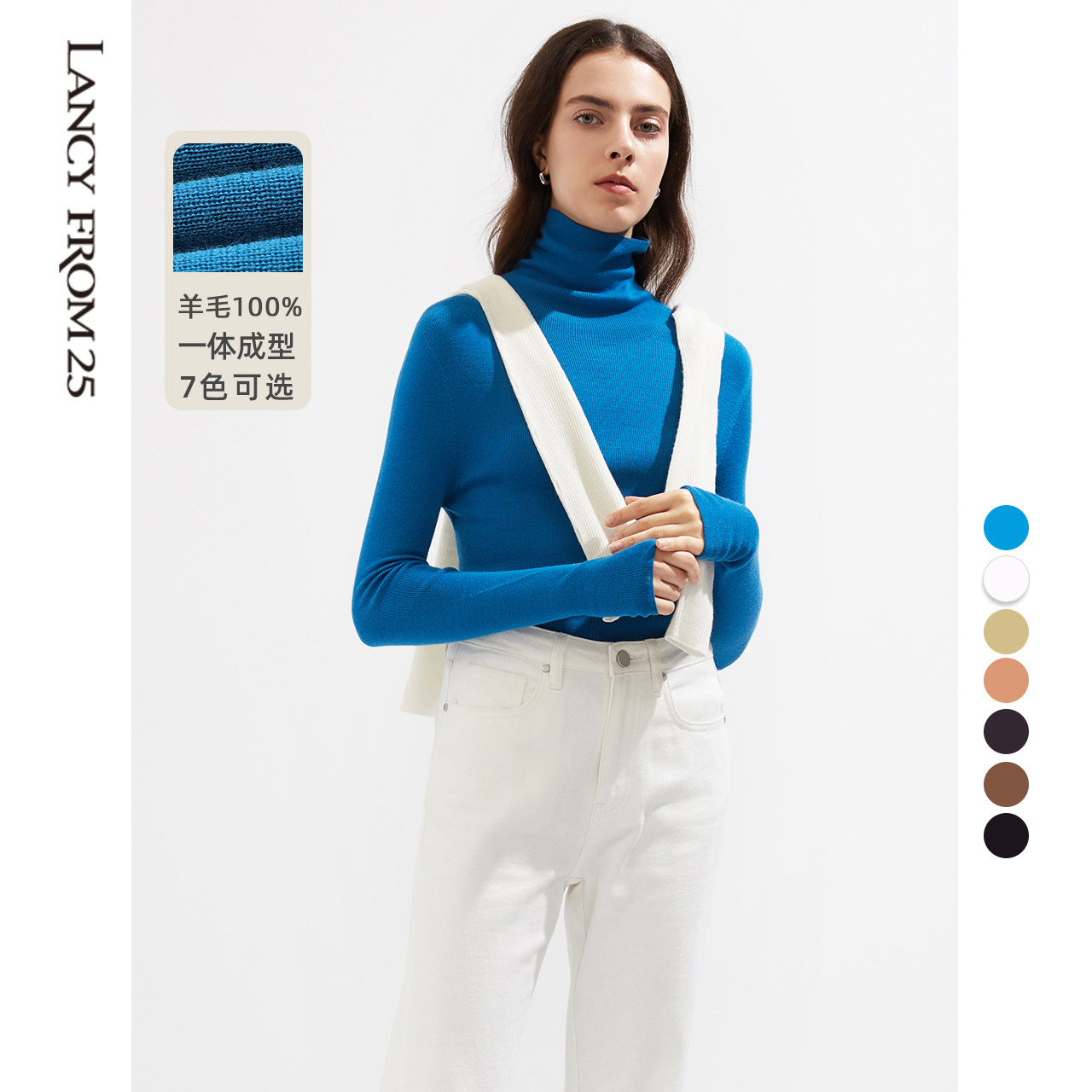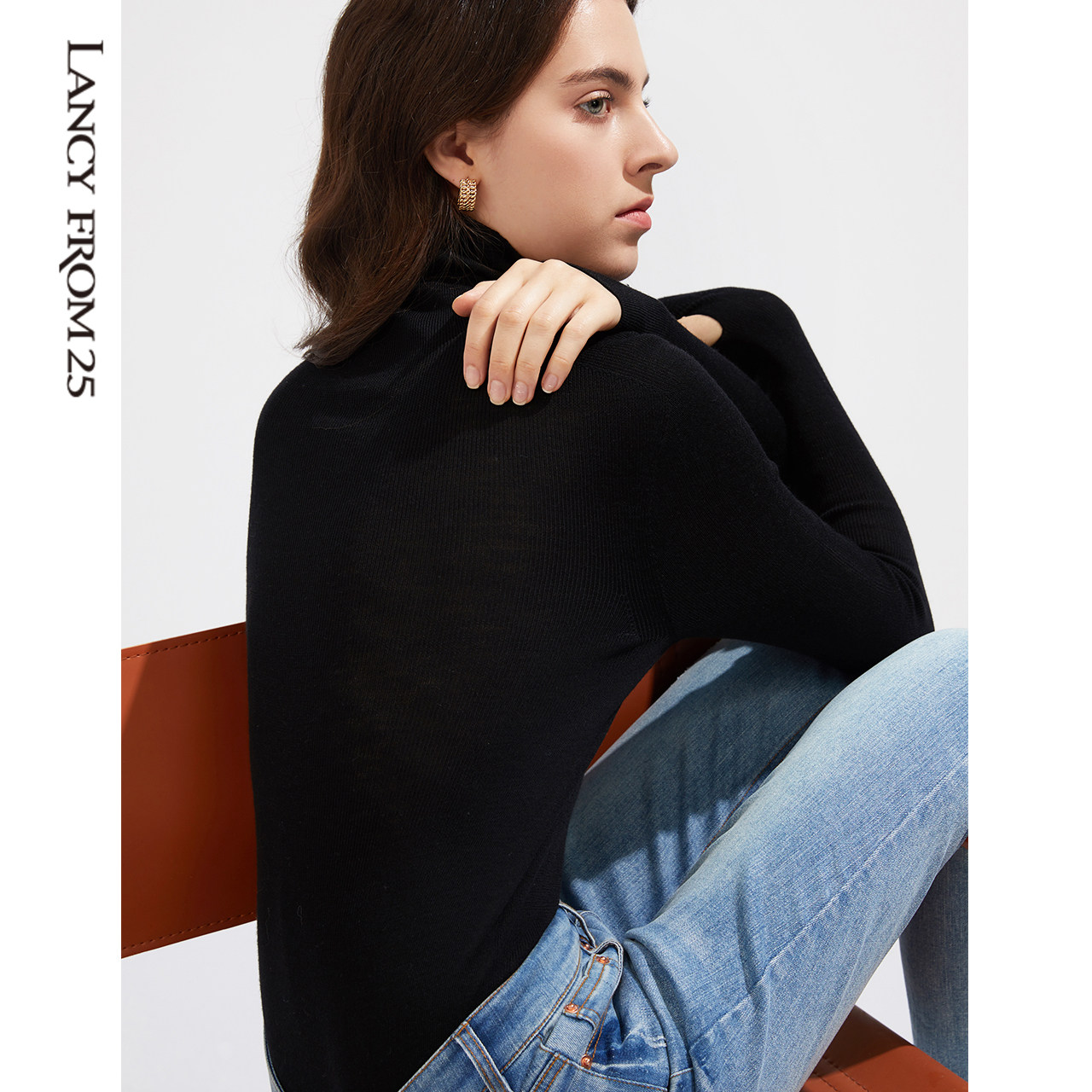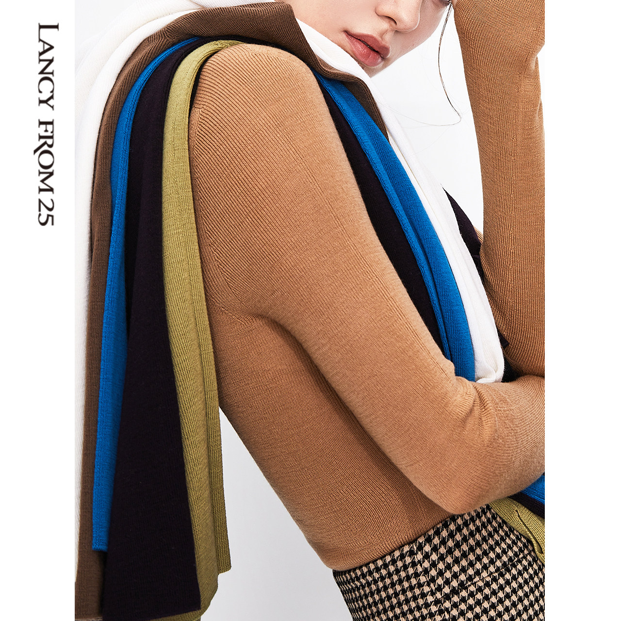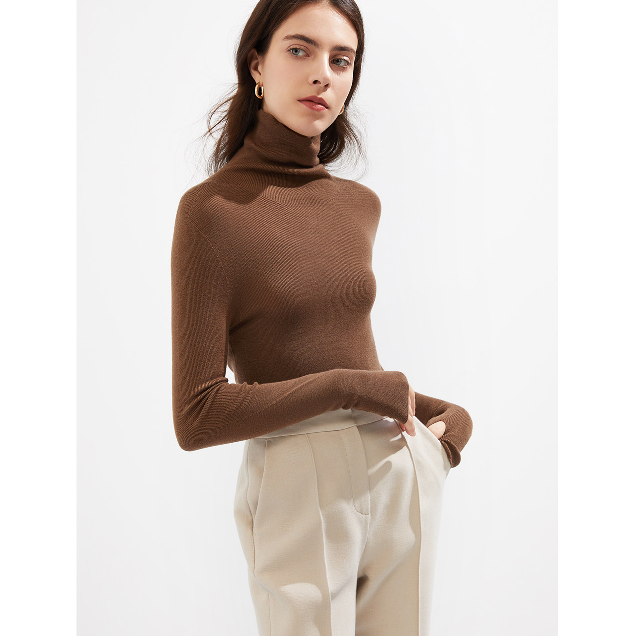 Lang Pose Pure Color Full Wool Beating Undershirt Woman 2021 Autumn Winter New and slim fit with knitted blouses