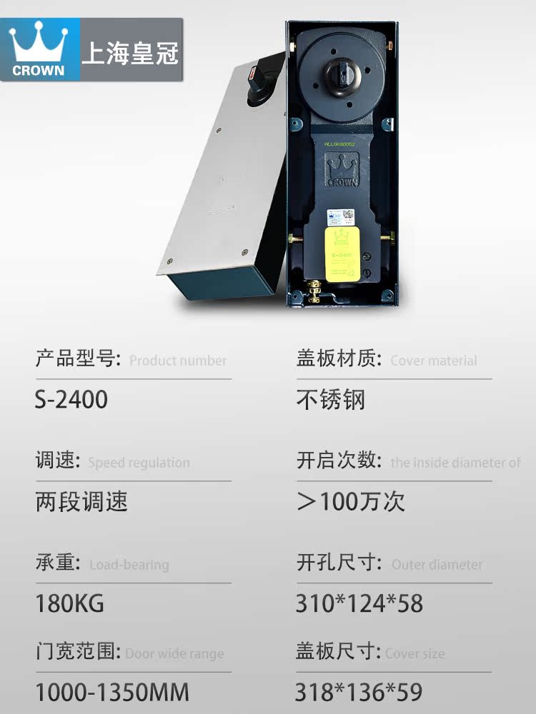 Shanghai Crown Glass Door with frame-free door heavy duty S-2400 positioning 180 kg weight bearing