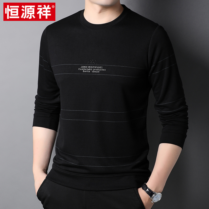 Hengyuanxiang autumn thin thick cotton T-print round neck long-sleeved T-shirt loose casual pullover bottoming shirt all-match top