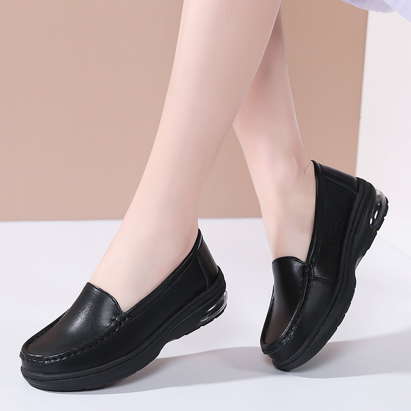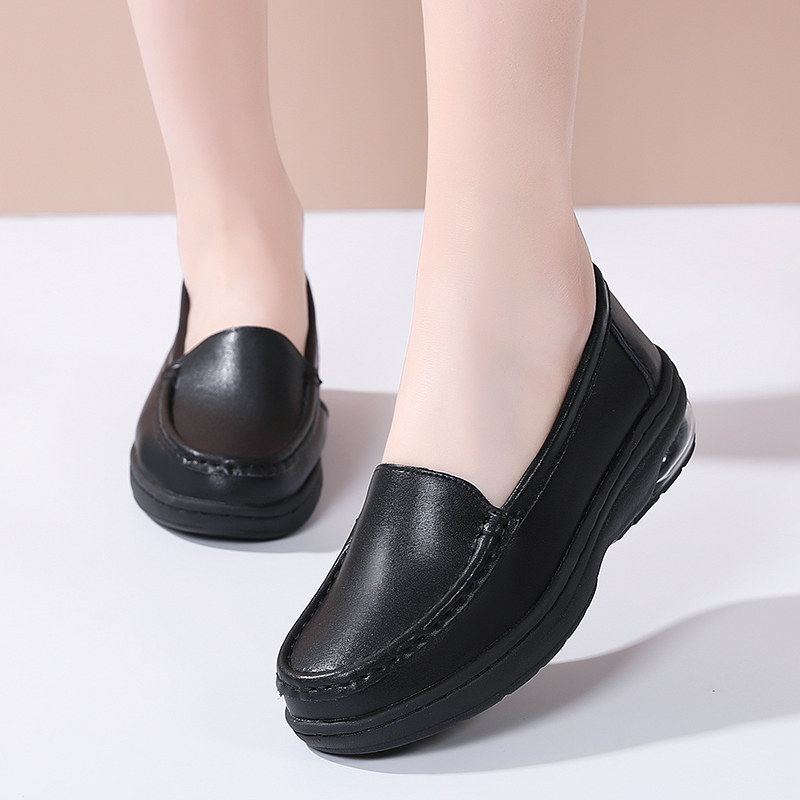 Nurse shoes women's soft bottom heightening air cushion bottom breathable deodorant non-slip genuine leather flat bottom without tired feet Advanced health care shoes