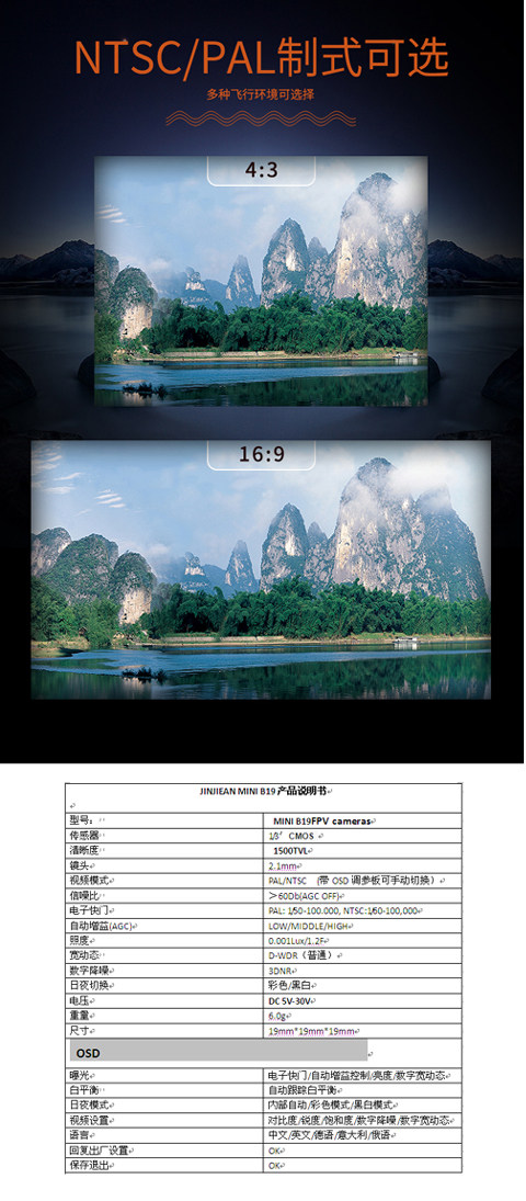 JINJIEAN B19FPV high-definition camera wide voltage 5V-30V aircraft model camera