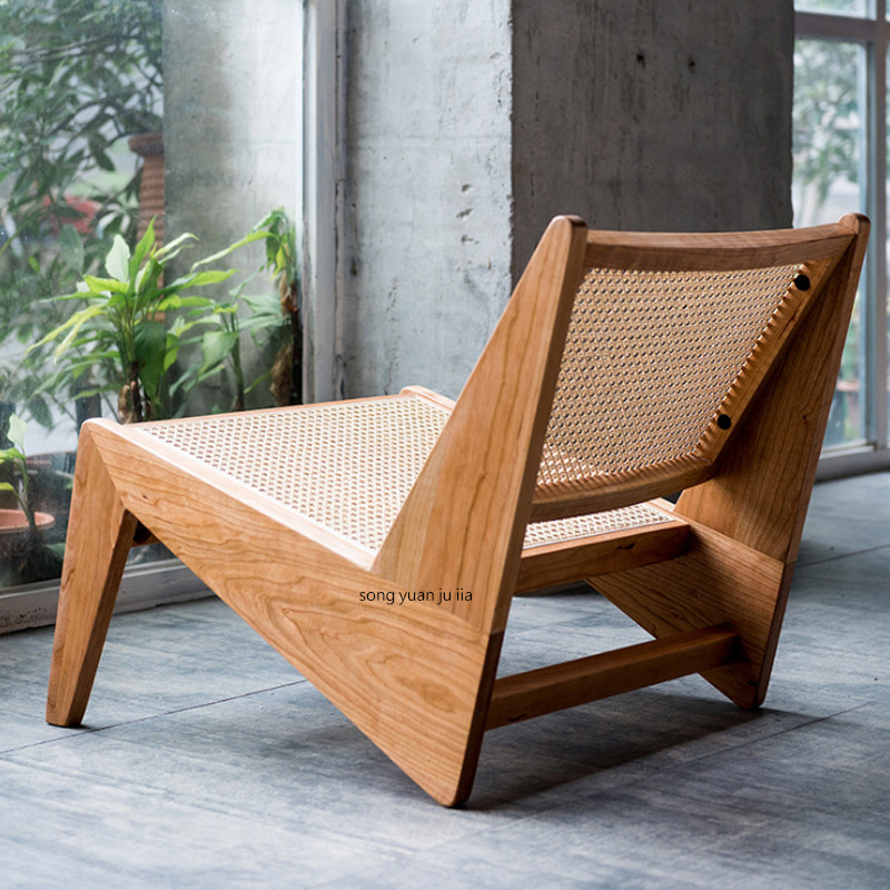 Nordic solid wood Chandigarh back chair ins simple single sofa chair B&B hotel living room rattan chair