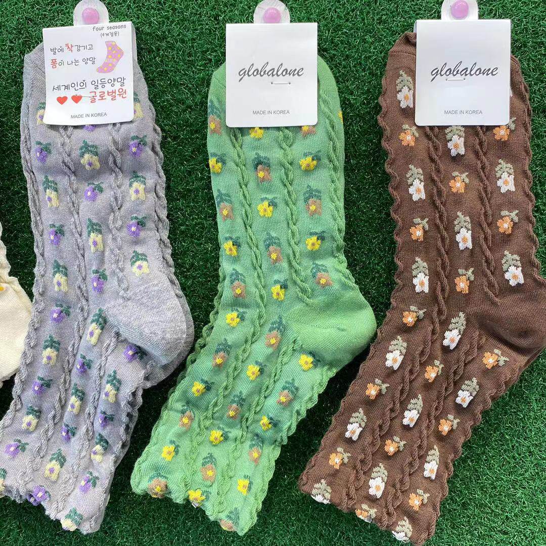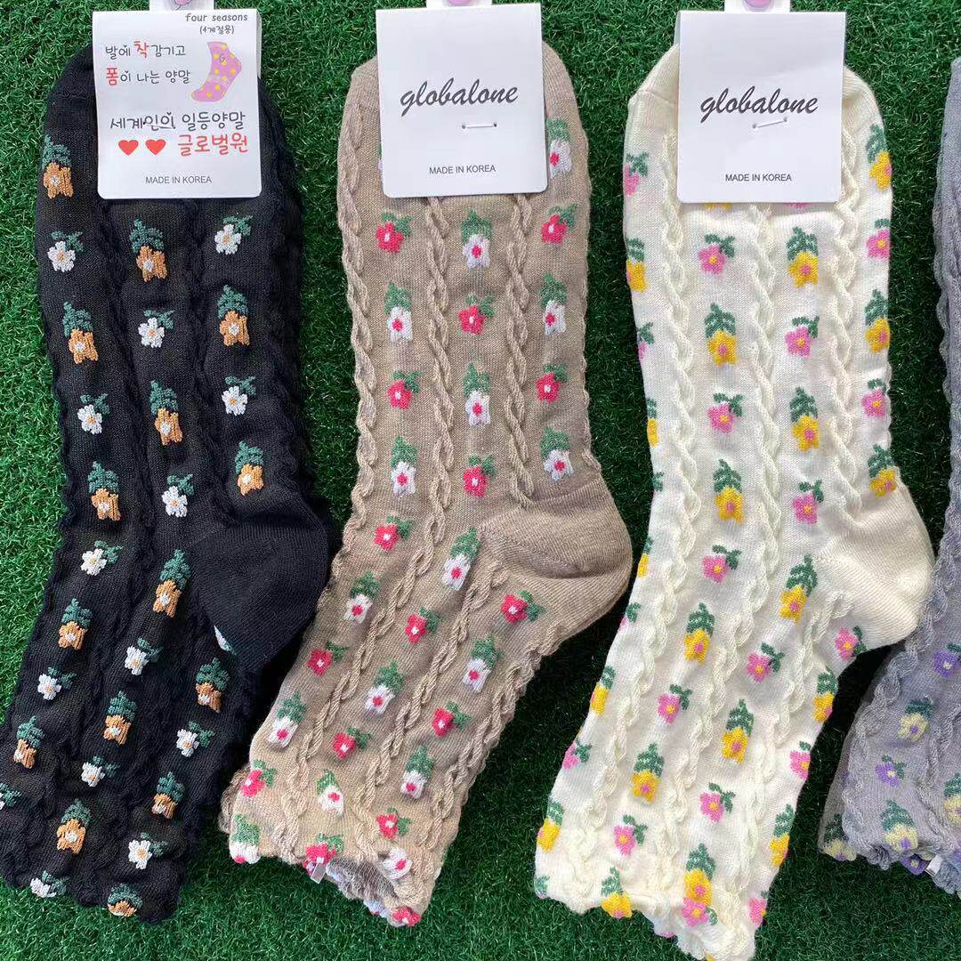 South Korea's Dongda Imported Autumn and Winter New Sweet Flower Cotton Socks Fashion Hyuna Style Ins Women's Middle Tube Socks Trend