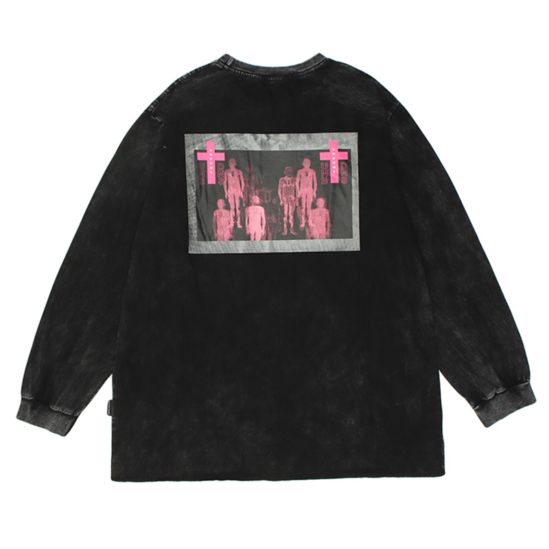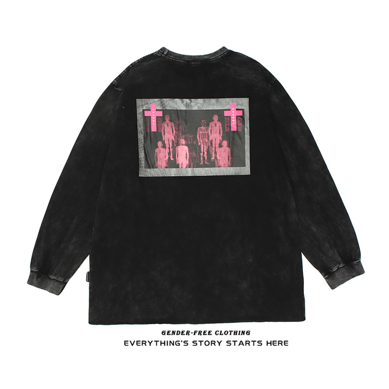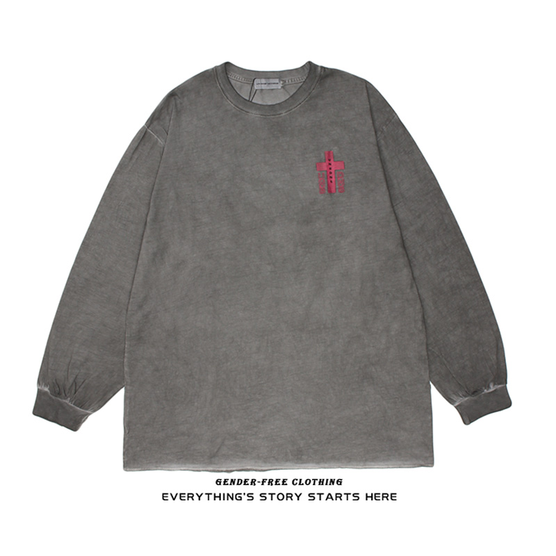 ZOROHOM made old washing water high street dark wind long-sleeved T-shirt men's loose hip-hop tide brand spring and autumn bottoming shirt