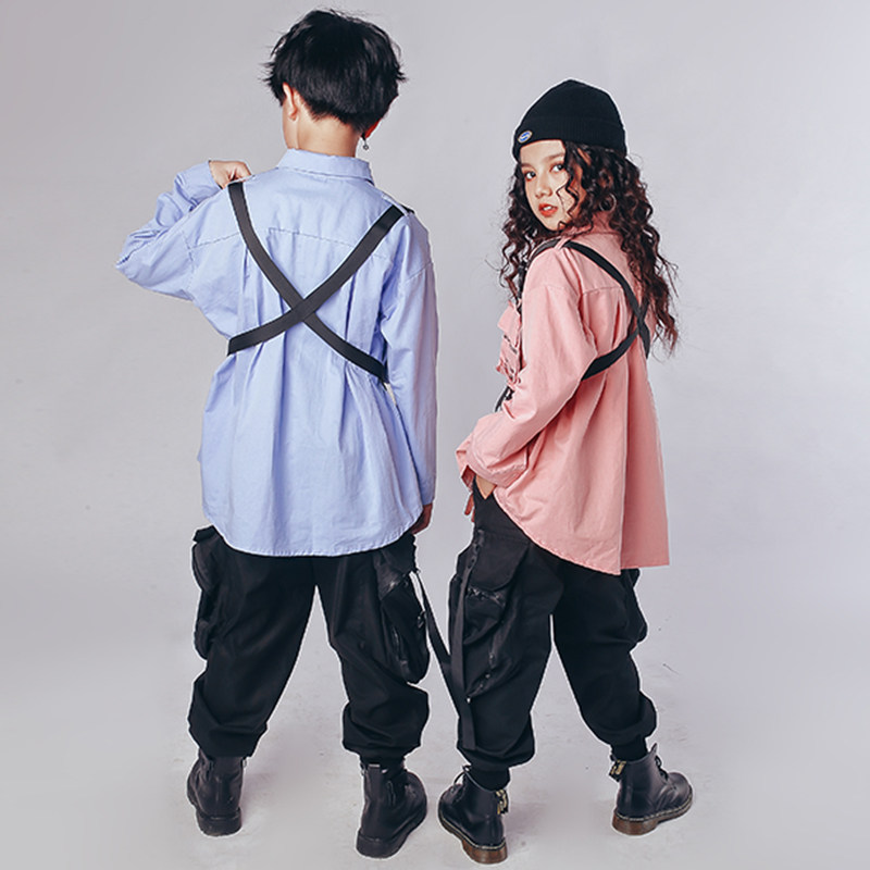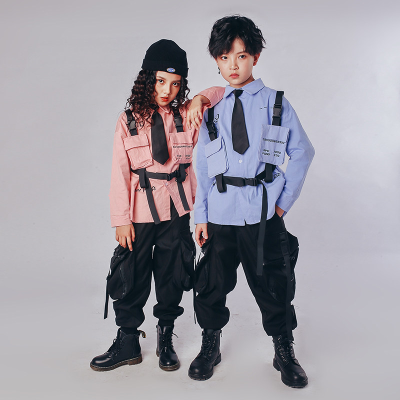 Hip-hop children's tide clothes boys hip-hop dance clothes suit drum cool handsome shirt girls jazz show clothes