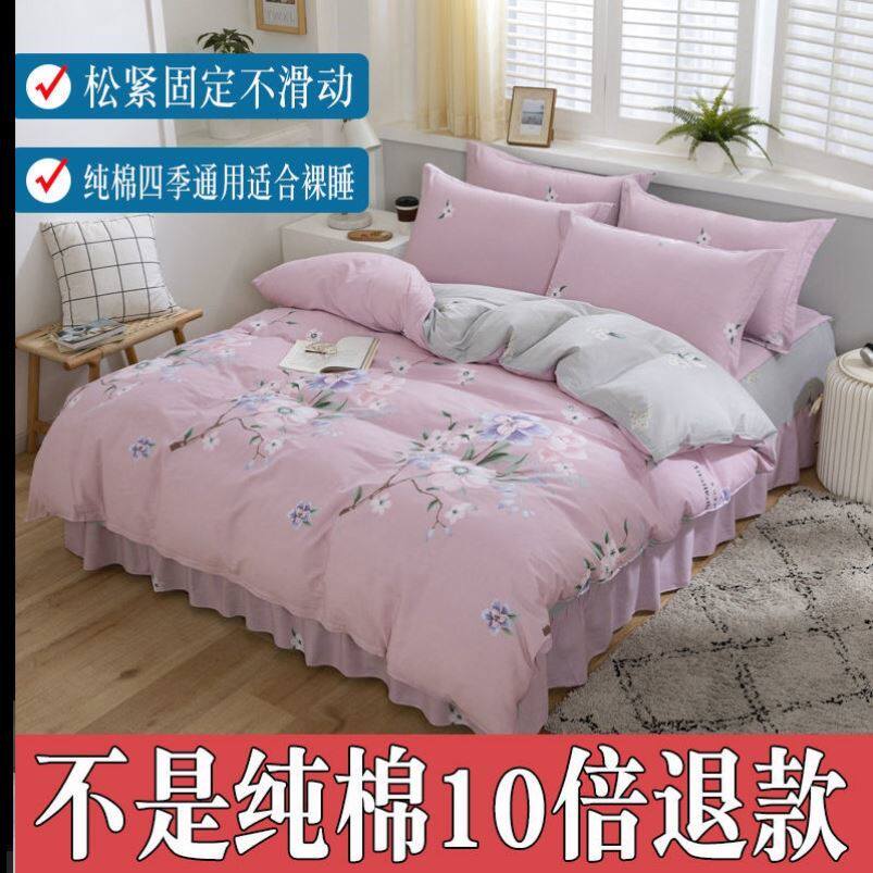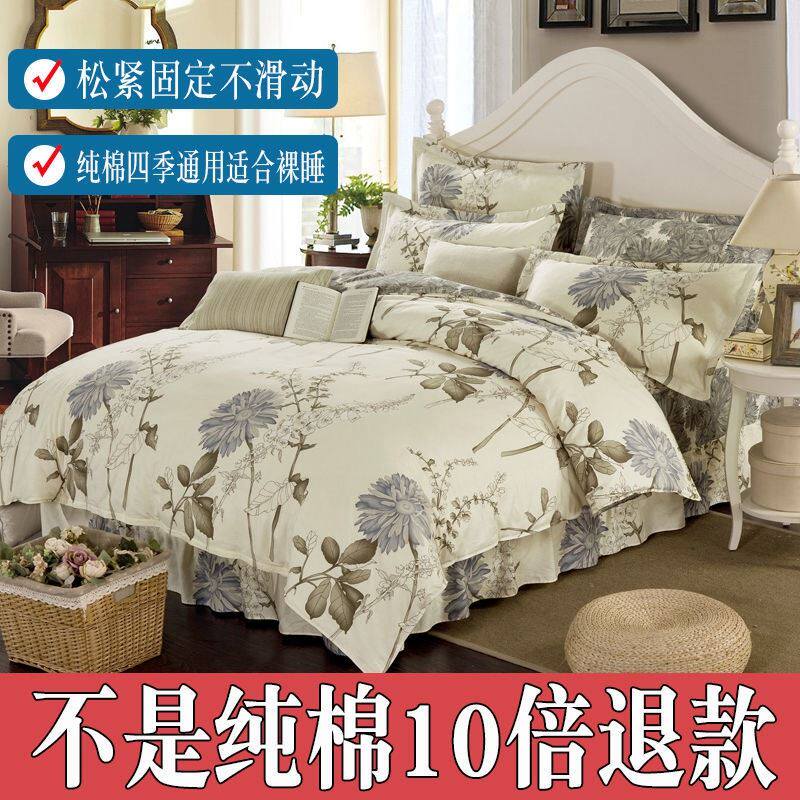 Advanced four-piece cotton bed skirt cotton bed skirt four-piece set of pure cotton Korean version 1 2m1 5m1 8m2 m quilt cover