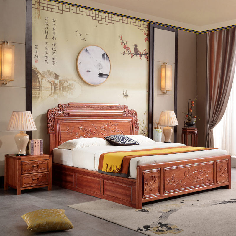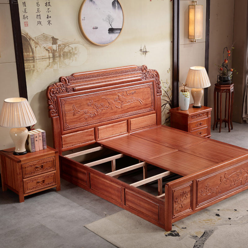 Flowers Pear Wood Double Man Bed Solid Wood Large Bed 1 8 m Wedding Bed Chinese Large Bed New Vintage Solid Wood Bed Master Bedroom Bunk Bed