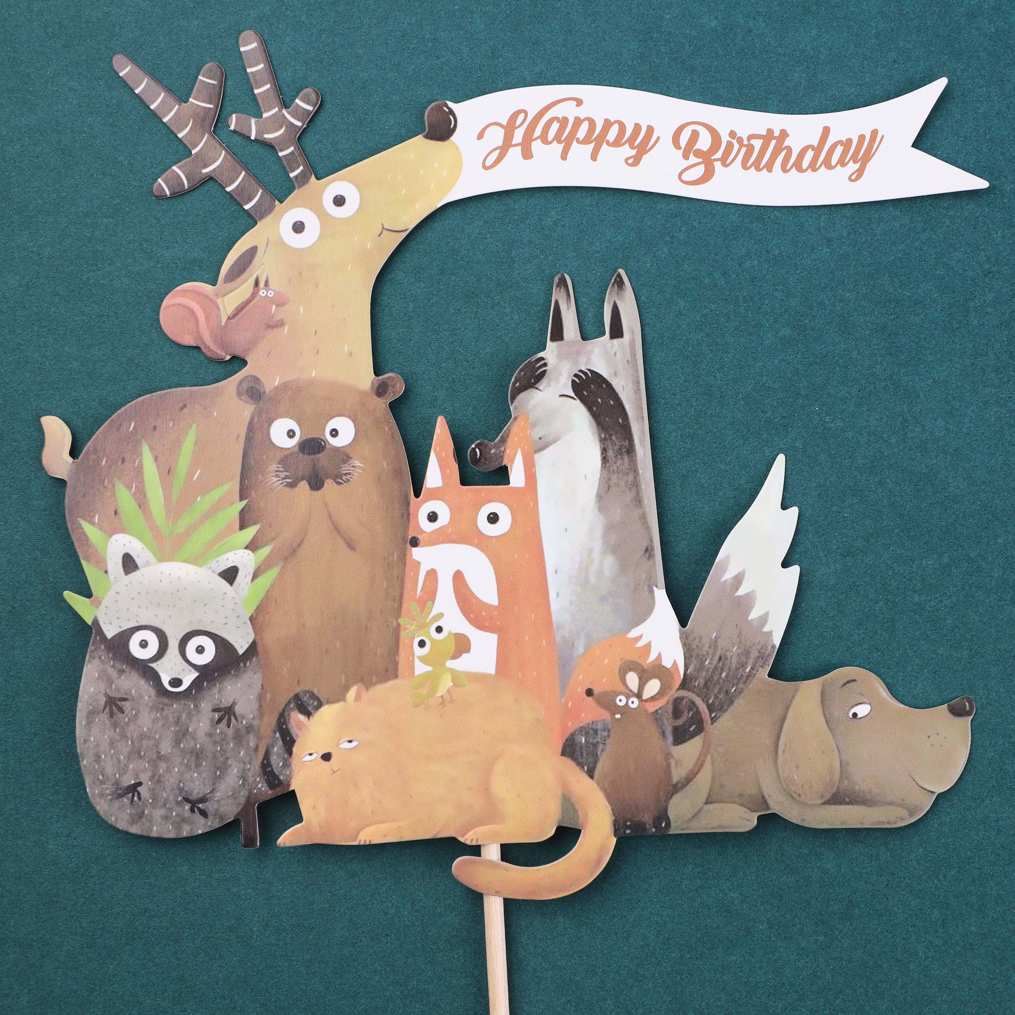 Forest animal Fox deer puppy birthday cake plug-in baking decoration plug