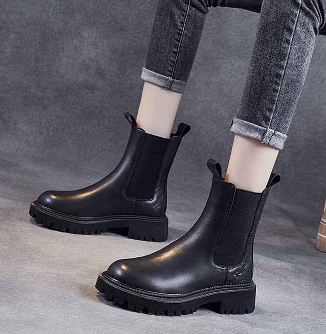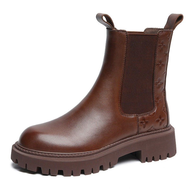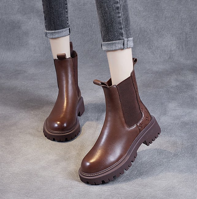Genuine leather retro Chelsea short boots women 2021 autumn winter new net red soft leather elastic boots in cigarette Martin boots