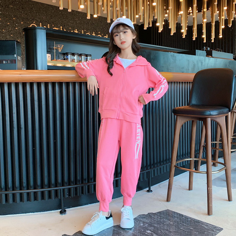 Girl Spring Clothing Suit 2022 New Foreign Pie Children Trendy Internet Red CUHK Child Spring Autumn Season Sportswear Two Sets
