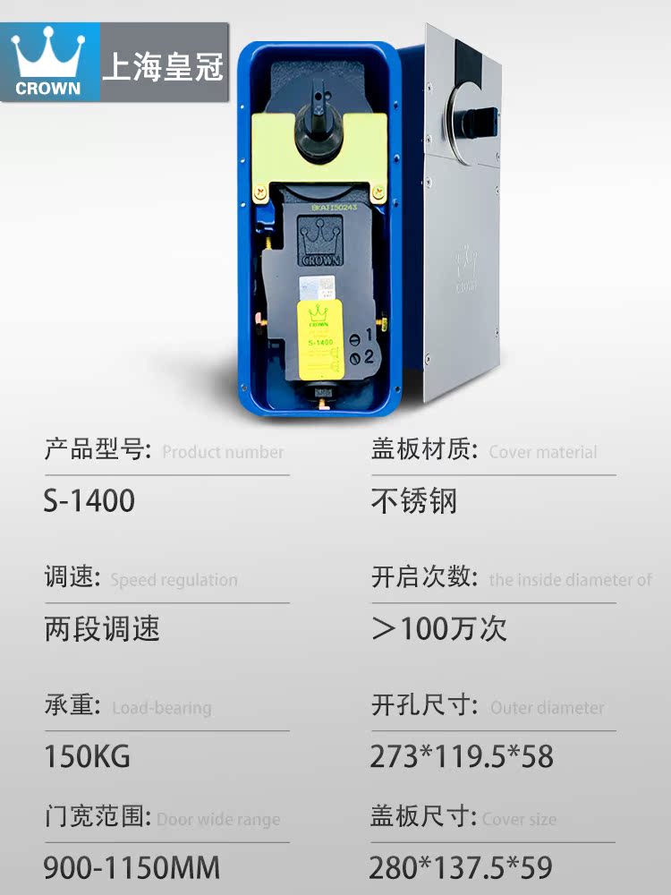 Shanghai crown land spring glass door wooden door with frame unframed door accessories S-1400 positioning 150 kg bearing