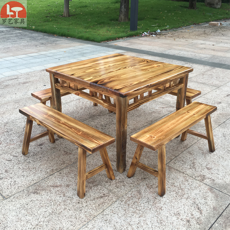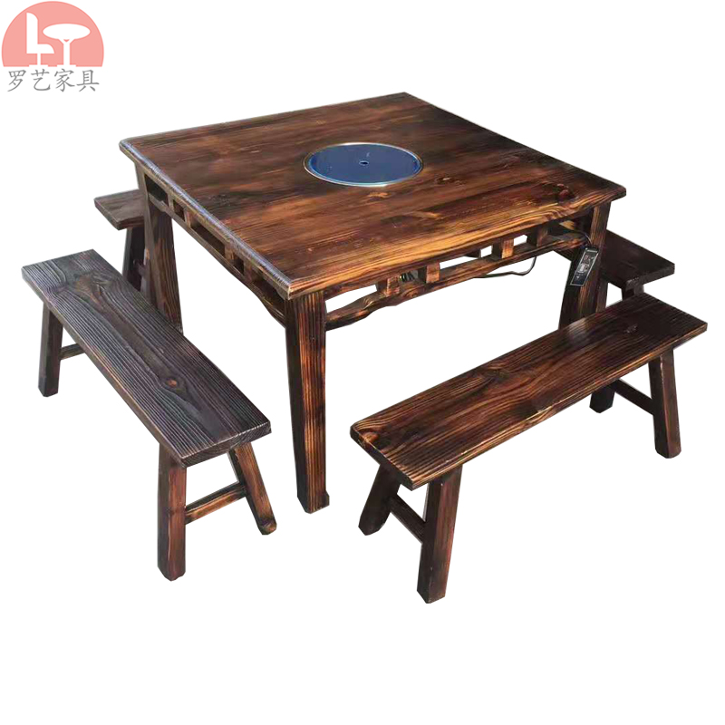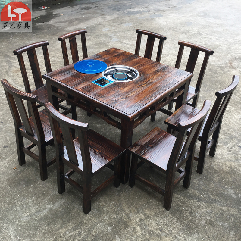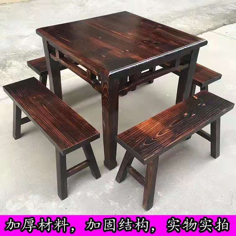 Solid wood hot pot table retro Baxian table restaurant leisure farm square table barbecue table barbecue table morning tea shop square table