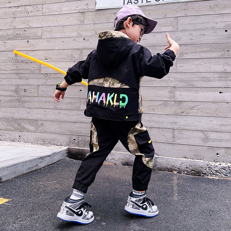 Boy Clothing Boy Suit 2022 New Handsome's CUHK Boy Nets Red Tides Spring Autumn Season Boy Long Sleeve Clothes