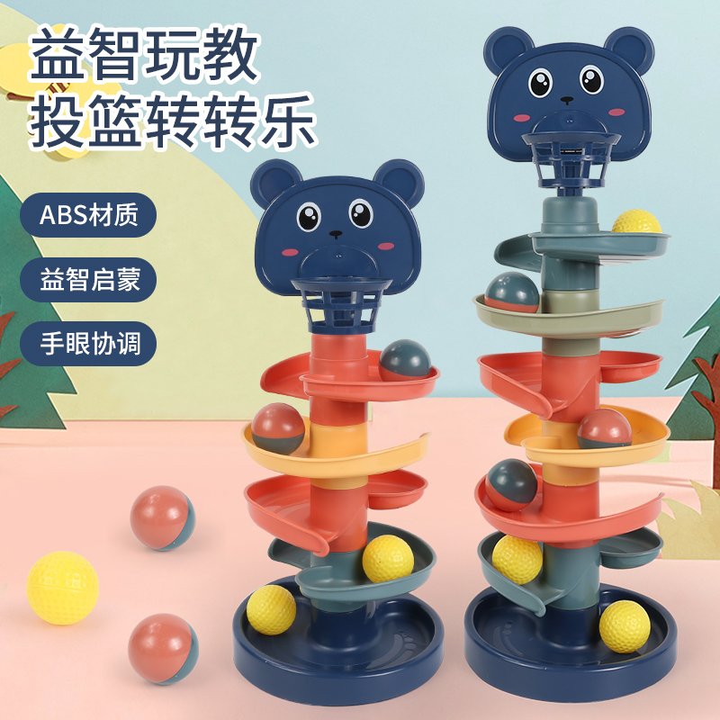 Children's stacking music shooting rolling ball sliding ball tower baby baby puzzle track turning music 0-1-3 years old 2 toys