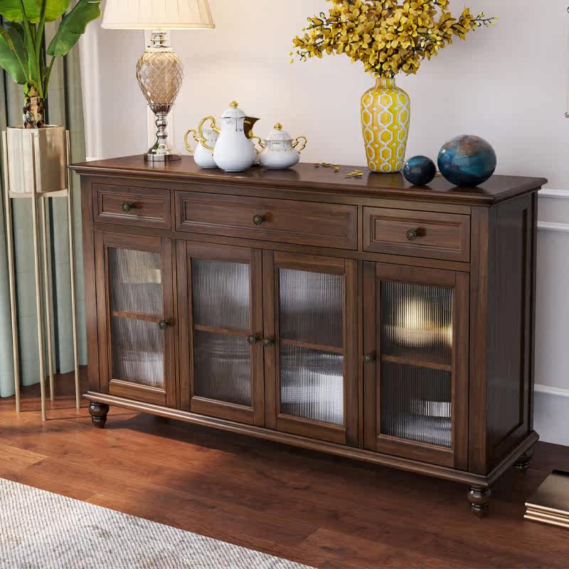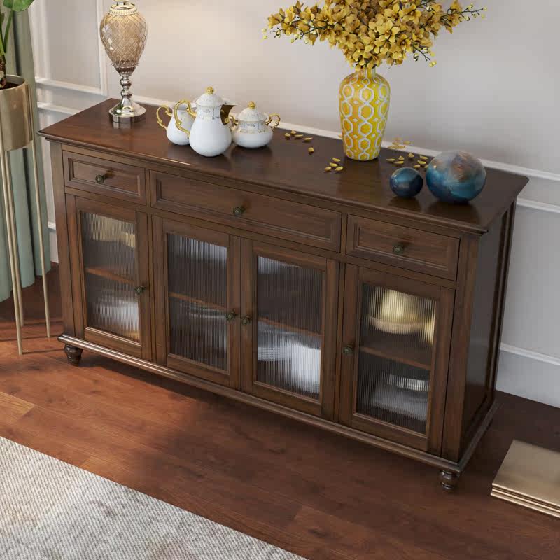 American dining cabinet pure solid wood wine cabinet living room tea cabinet home kitchen cupboard ash wood furniture dining room overall cabinet