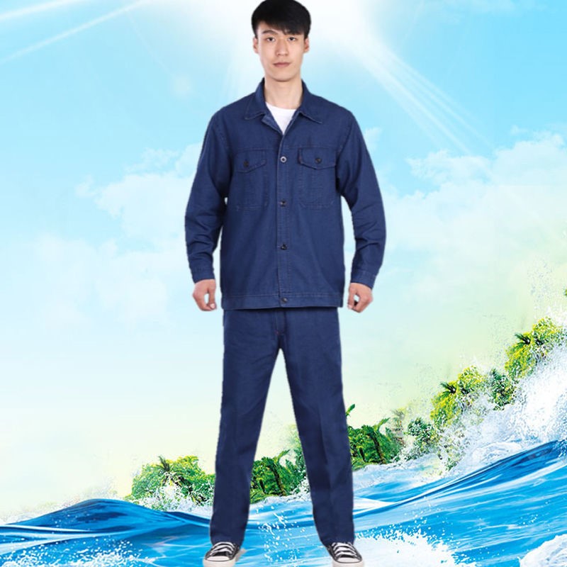 Summer thin denim overalls suit men's multi-pocket cotton loose labor insurance clothing welding worker tooling factory