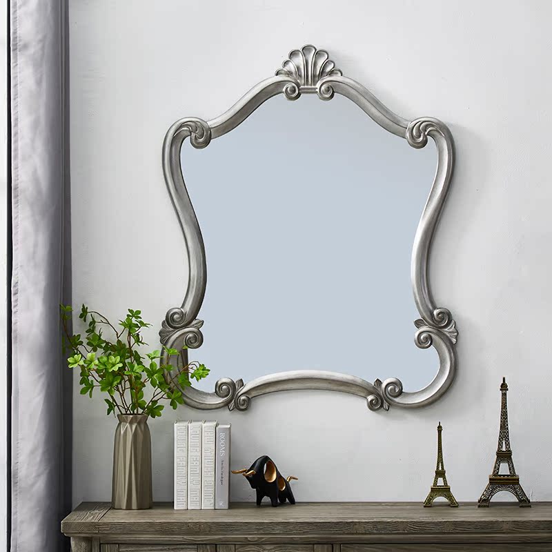 Eurostyle Antique Carved Flower Makeup Room Bathroom Wall-mounted Mirror American Bedroom Desktop Makeup Mirror Fireplace Genguan Decorative Mirror