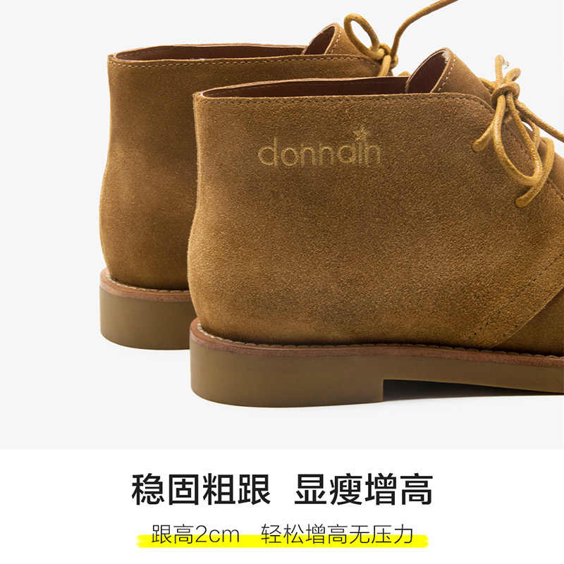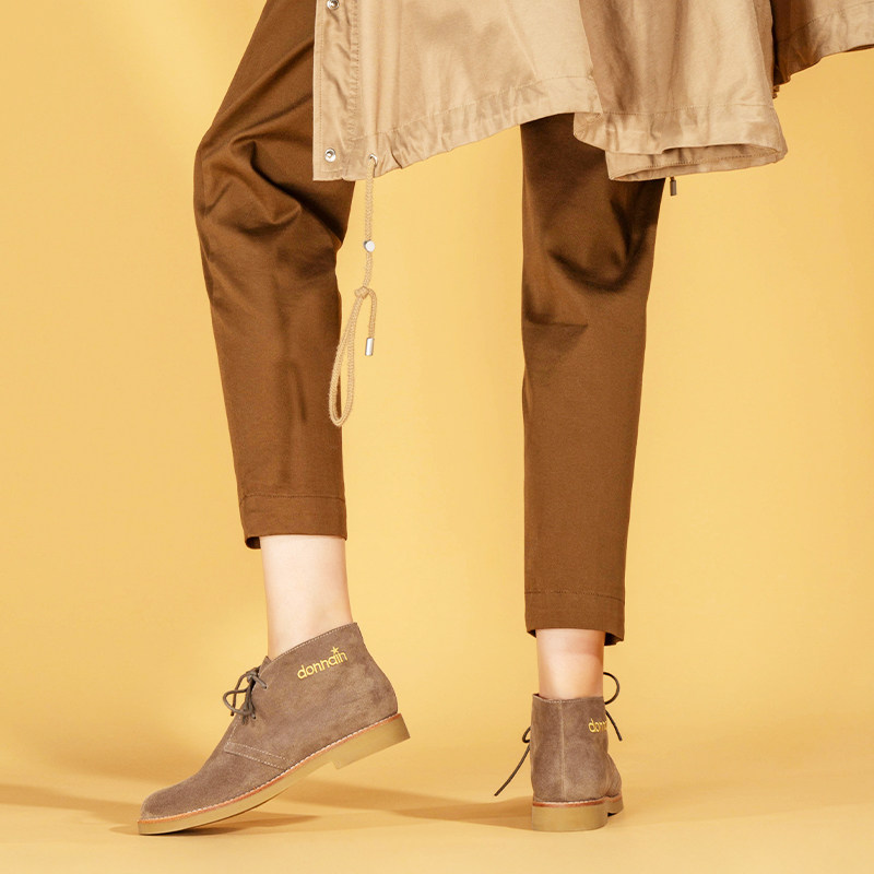Deona's new camel leather suede short boots women's niche lace up spring and autumn single boots matte Martin boots flat bottom