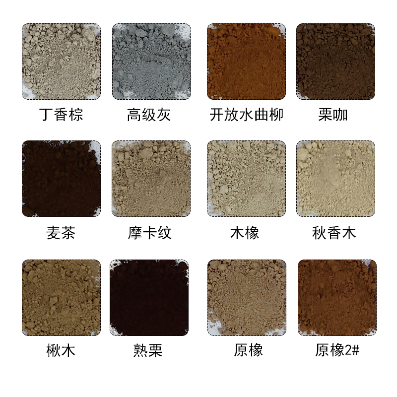 Transparent chestnut gray white oak 1# Lilac brown open ash wood oak Ripe chestnut original oak 2# Slate straight grain Slate straight grain 1# Slate straight grain 2# Boxwood 1# Boxwood 3# Wheat tea Mocha pattern Catalpa sparrow