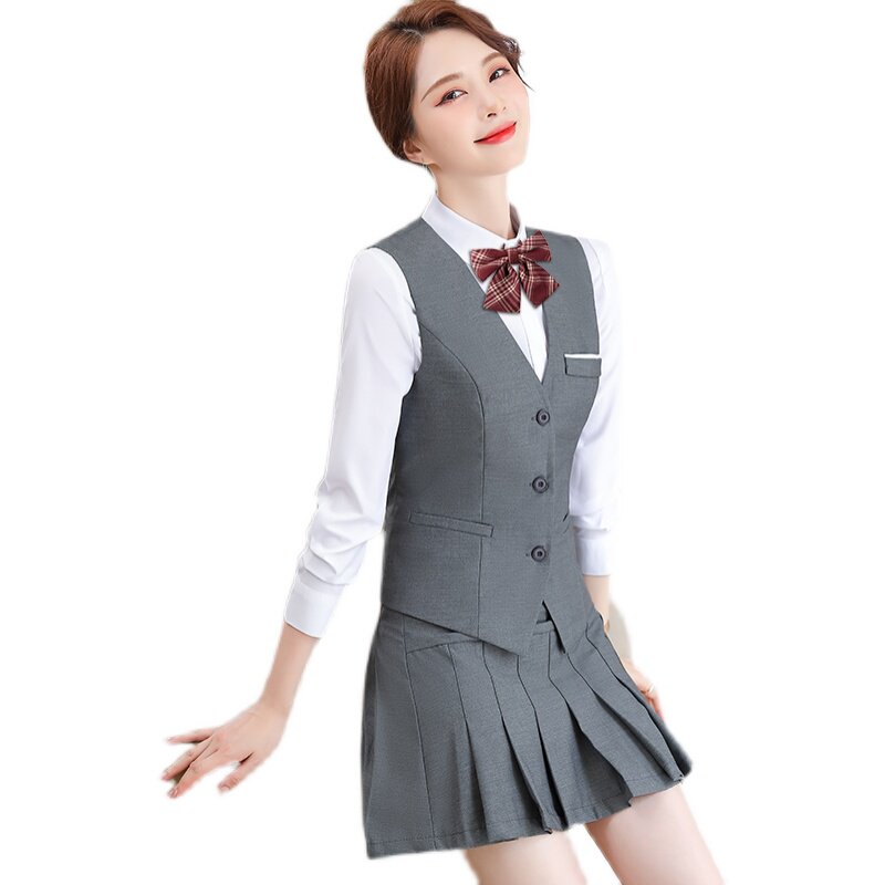 One Piece Gray VestSingle Piece Blue VestGray Vest Shirt TrousersBlue Vest Shirt Trousers Gray Vest Shirt Pleated Skirt Blue Vest Shirt Pleated SkirtGray Vest Lining
