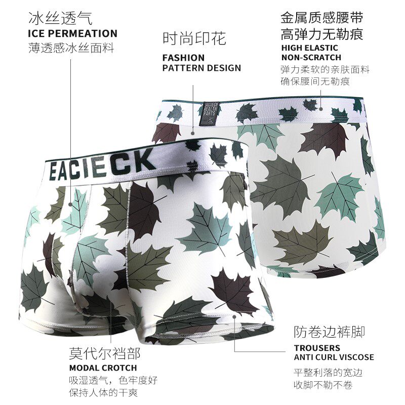 Men's underwear Men's ice Silk Four corners slim Breathable Four-corner Pants Courtesy Box Tide Summer Cartoon Personality Vc Kvc