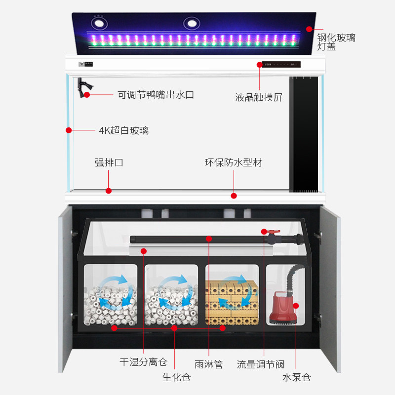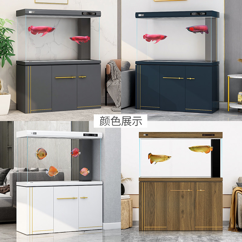Fish tank living room large ultra-white glass fish tank home 2021 aquarium screen light luxury bottom filter ecological fish tank