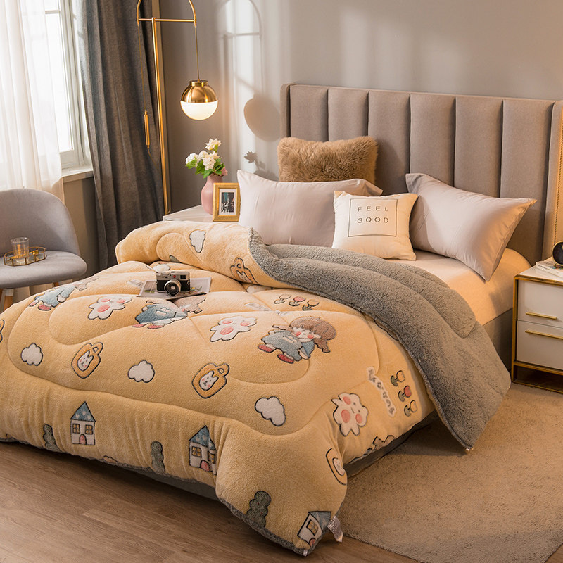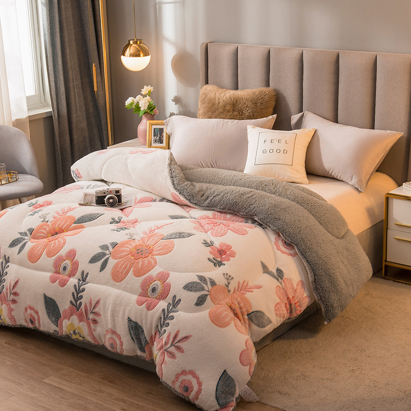 Lamb Suede Quilt Winter Quilt Cotton Quilt Thickened Warm Dormitory Single Students Autumn Winter Quilt Core Silk Cotton Snowflake Quilted Bedding