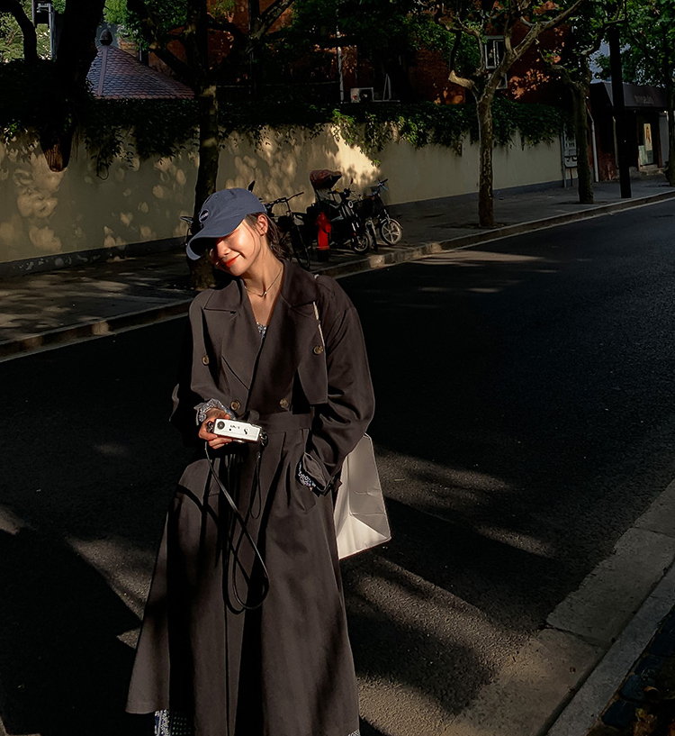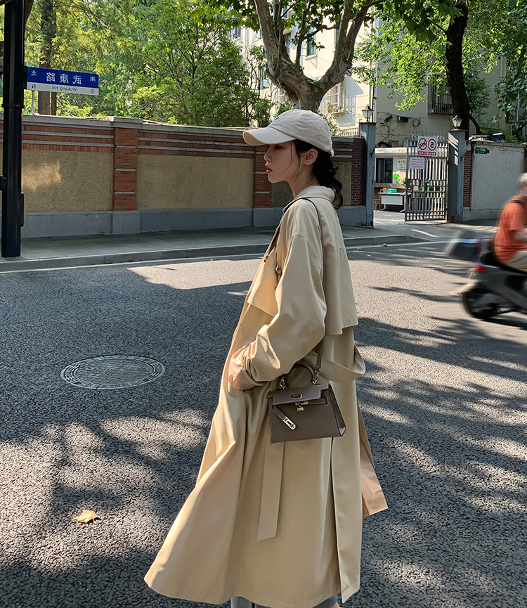 Card its color windsuit woman with a long version of the knee 2021 Fall new Korean version loose Temperament Cashew Jacket