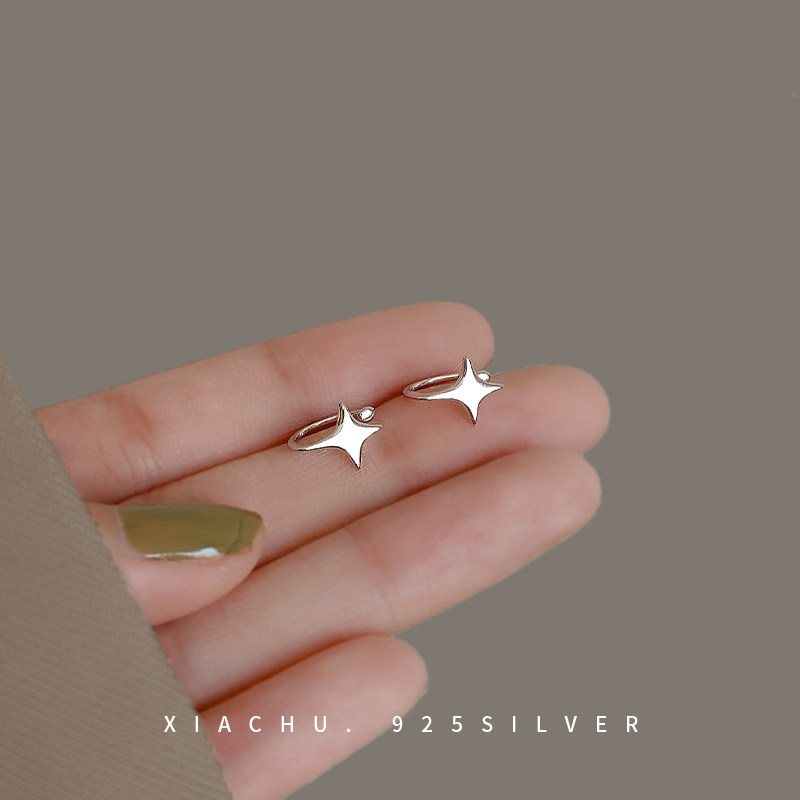 925 Pure Silver Stars Ear Clip Woman No Earle Hole 2021 New Tide Sleeping Free Ear Needle Advanced Sensory Ear Bone Clip