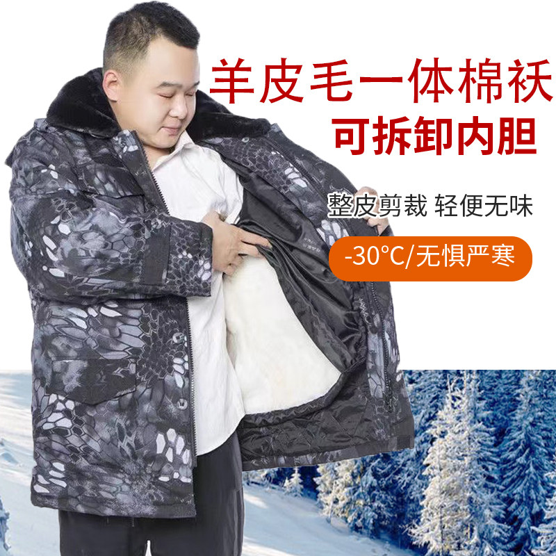 Winter sheepskin army cotton coat sheepskin wool coat men's thickened mid-length warm and cold-proof cotton coat cotton jacket