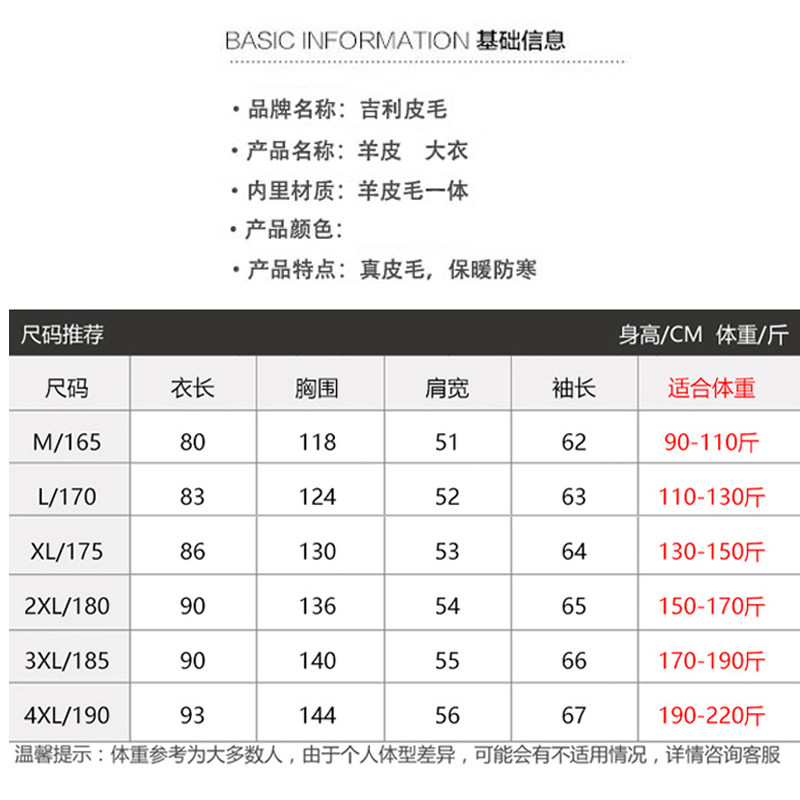 165 (suitable for 90-120 jins) 170 (suitable for 110-140 jins) 175 (suitable for 130-160 jins) 180 (suitable for 150-180 jins) 1