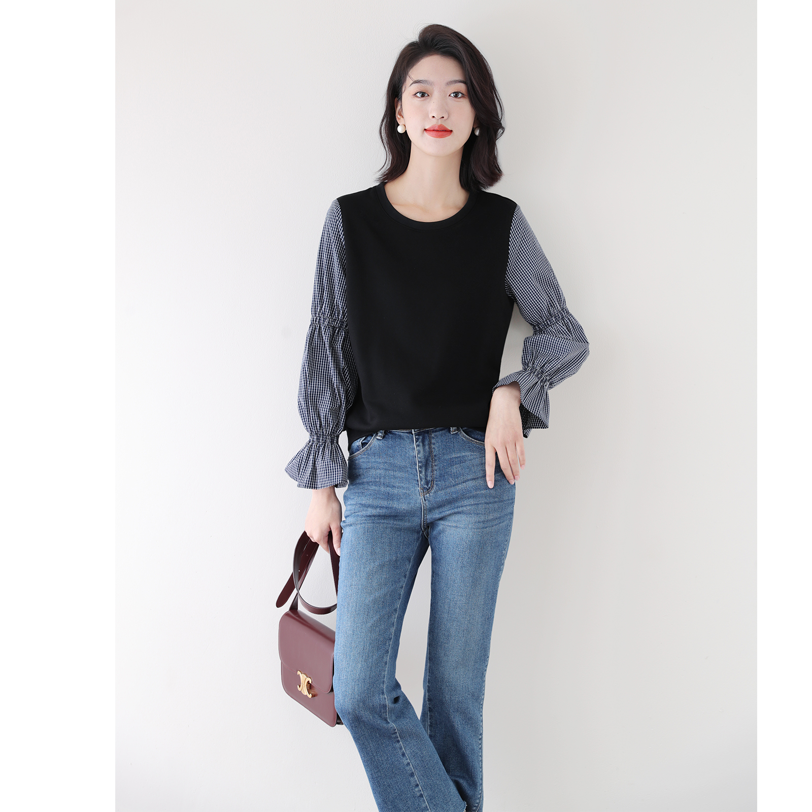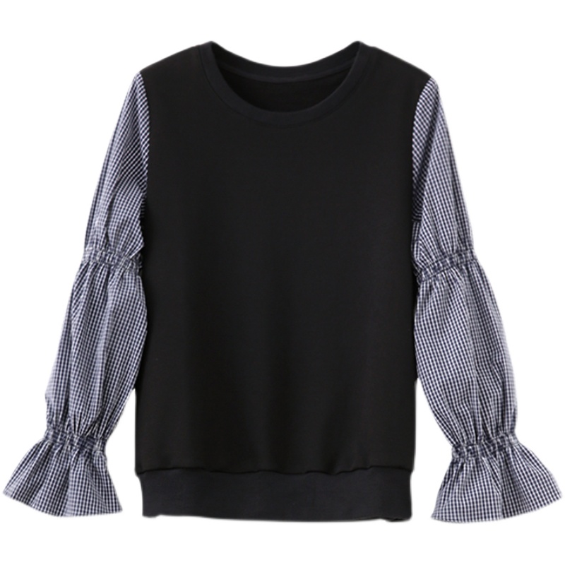 Plaid stitching fake two-piece sweater women's spring and autumn thin section 2021 new high-end long-sleeved design niche