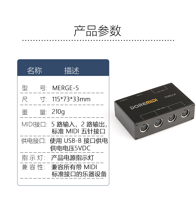 DOREMiDi MIDI MERGE-5 -3MIDI 5 in 2 out of MIDI Merger BOX Box