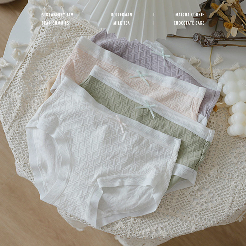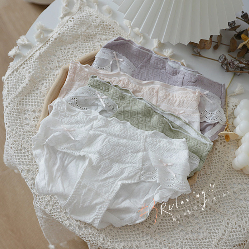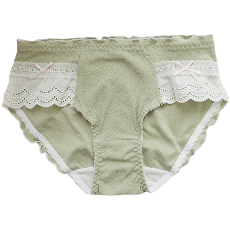 Lace sweet girl mid-rise briefs antibacterial Japanese solid color wrapped hips autumn winter Modal cotton fabric
