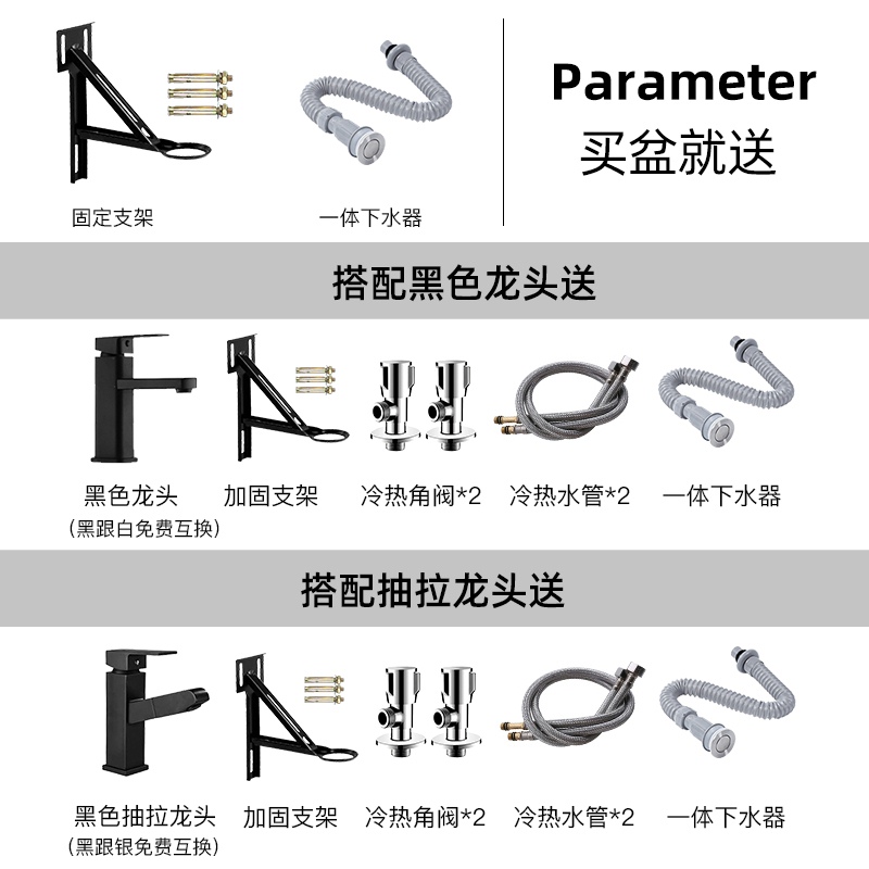 14-inch laundry basin (sewer fitting) 14-inch washbasin (black tap) outside 14-inch washbasin (pull-pull tap) tub 16-inch washbasin (sewer fitting) outside the basin