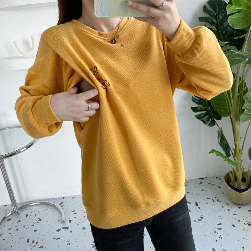 Yellow breast-laces grey breast-feeding sweatshirt for a long time