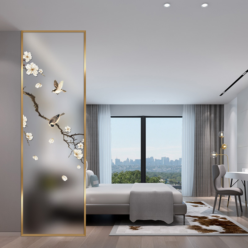 Modern minimalist light and luxurious glass screen partition living room New Chinese entry type Xuanguan decoration Bedroom sheltering flowers and birds