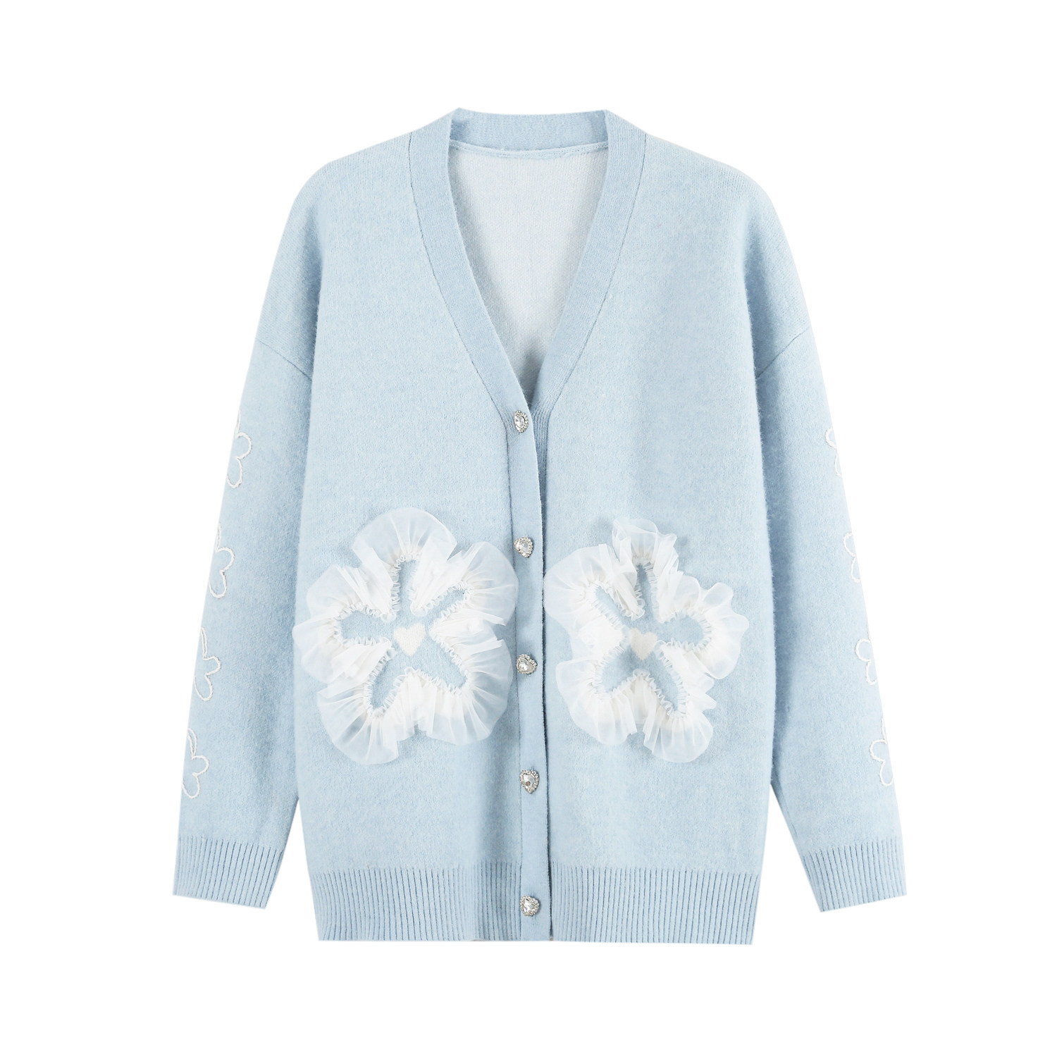 (Jin Mengjia same style) SOMESOWE 2021 autumn new mesh yarn flower sweater cardigan