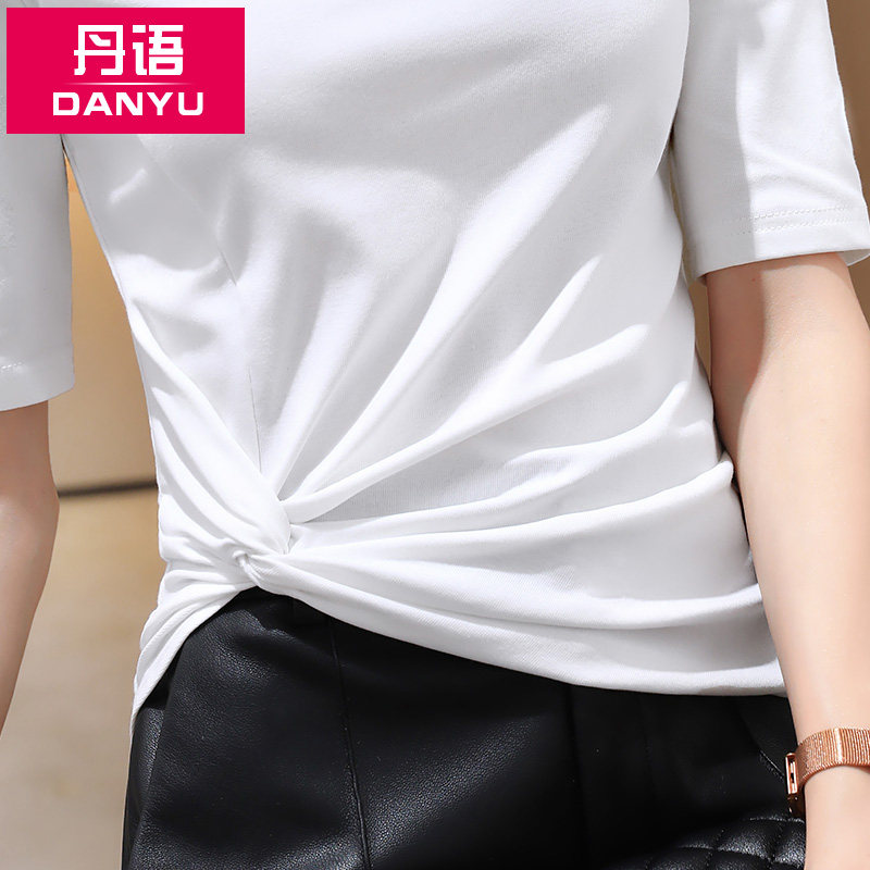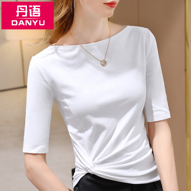 Dan chinese sleeve t-shirt women white 2022 women's one-line collar half-sleeve t-shirt black chic one-word shoulder top
