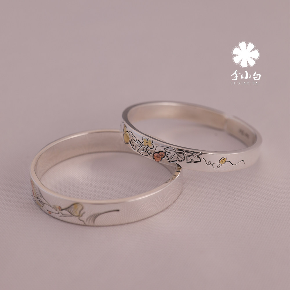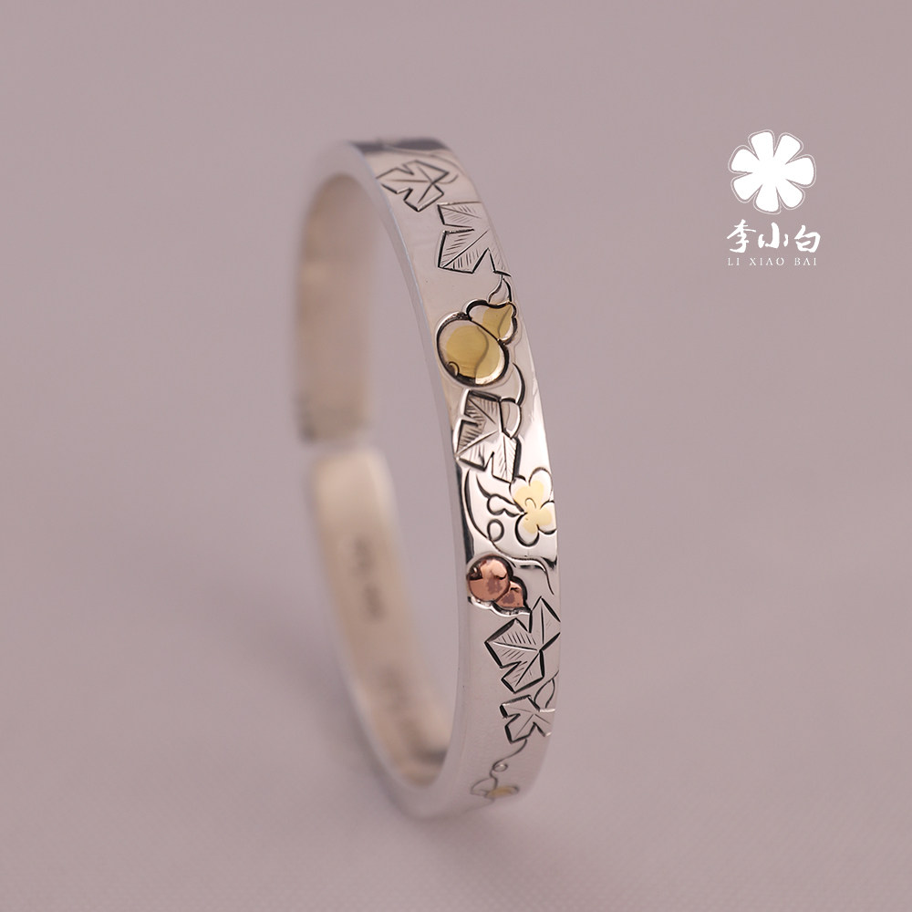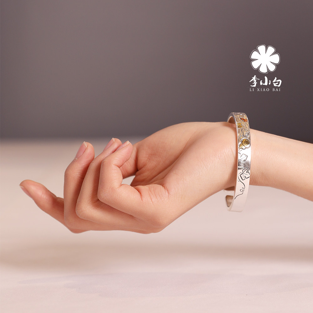 Li Xiaobai pure silver bracelet pure handmade pure silver 9999 master chisel-engraved bracelet