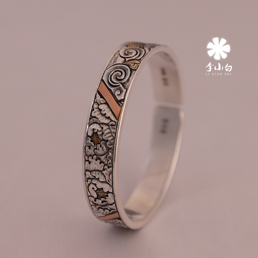 Li Xiaobai sterling silver bracelet pure handmade sterling silver 9999 master chiseled bracelet